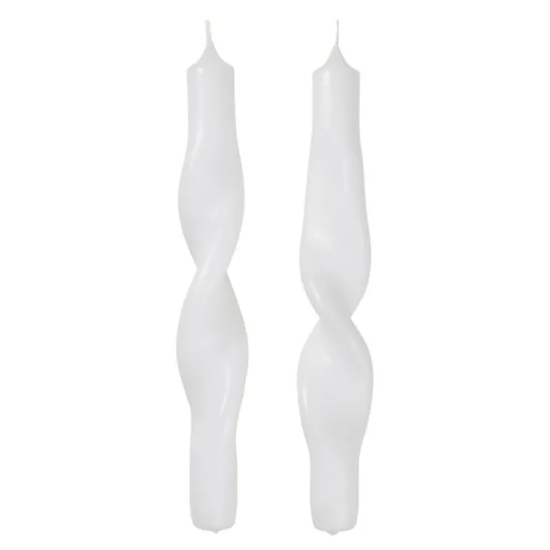 Sett med 2 stykk vridde lys, Twist i fargen pure white, fra Broste Copenhagen. De elegante snurrelysene i overdyppet paraffin gir lysestaken, bordet og rommet et ekstra løft. Broste Copenhagen er særlig kjent for deres høye kvalitet på lys, som gjør at mange nettopp velger disse igjen og igjen.