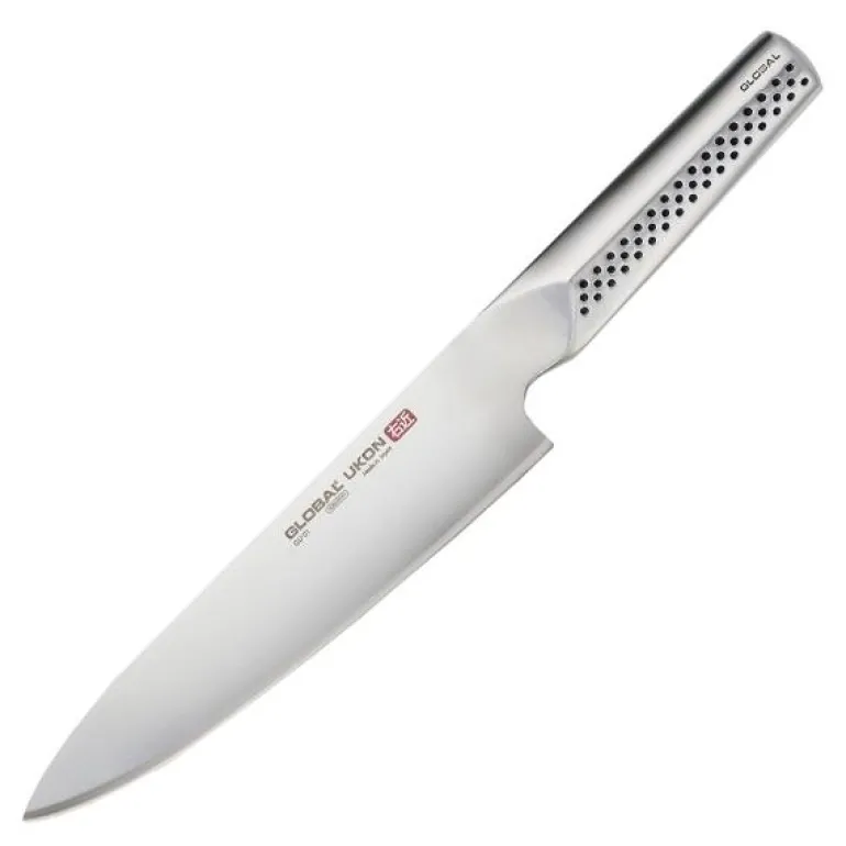 Utforsk Globals Ukon-kolleksjon, som forener det tradisjonelle og moderne i en serie med godt gjennomtenkte kjøkkenkniver. For å bevare knivens skarphet og kvalitet anbefales det å vaske kniven for hånd og tørke den umiddelbart etter bruk. Med Globals Ukon kokkekniv får du ikke bare et redskap, men en trofast følgesvenn i matlagingen.