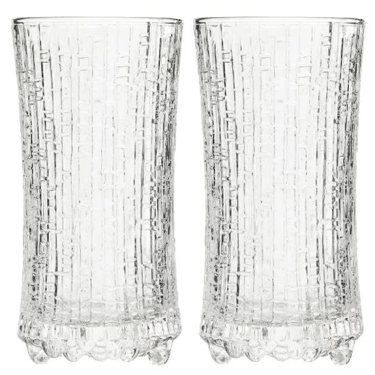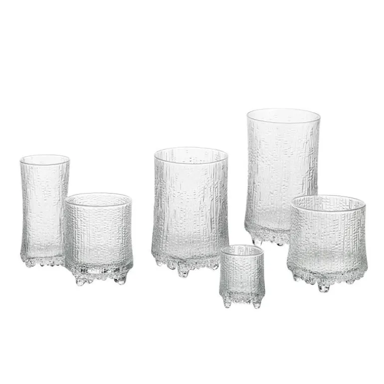 Ultima Thule champagne 18cl 2-pk. Design Tapio Wirkkala 1968.Smeltende is i Lappland var Tapio Wirkkalas inspirasjon da Ultima Thule ble til, men overflaten på Ultima Thule ble opprinnelig skapt da Wirkkala på 1960-tallet eksperimenterte med å helle glødende glassmasse i grafiske treformer han hadde skåret i. Mønsteret ble gradvis endret ettersom glasset brant seg inn i overflaten på treformene.Det eksklusive designet gjenspeiler de tusentals timer som har blitt brukt for å finjustere glassblåseteknikken, som kreves for å produsere effekten i glasset. Designer Tapio Wirkkala. Kan vaskes i oppvaskmaskin.