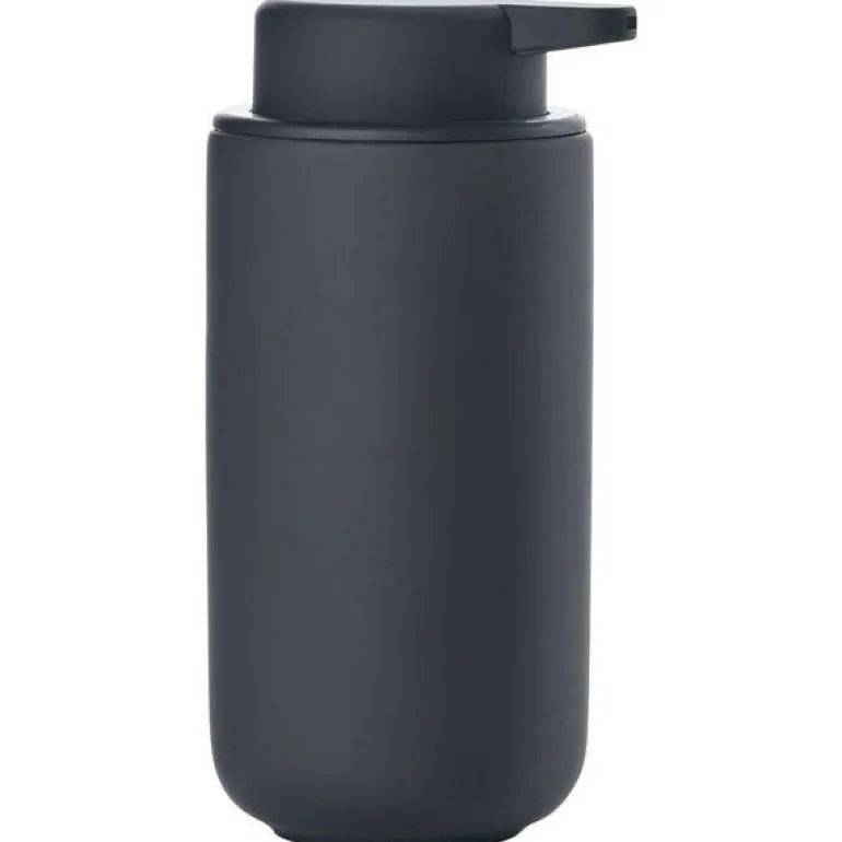 Zone Ume Såpepumpe Dia. 8,3 x 19 cm 450 ml Black. Såpedispenseren fra baderomsserien Ume er utformet med en praktisk tut, og den har silikonbunn som sørger for at den står støtt på bordet eller i den veggmonterte holderen. Designertrioen VE2 står bak designen av seriens velproporsjonerte elementer. Høyde 19 cm. 0,45 l. Såpedispenseren Ume er tilgjengelig i to størrelser, og den store er perfekt til for eksempel bodywash eller bodylotion.Elementene i baderomsserien Ume gir et solid og velbalansert uttrykk – både for øyne og hender. Ume er det japanske ordet for plommetre, og et symbol på eleganse, tålmodighet og styrke. Den første bokstaven, U, bestemmer seriens form, som er moderne og klassisk på samme tid, med gjennomtenkte og funksjonelle detaljer.Såpedispenseren har for eksempel en lang tut for optimal pumpefunksjon, og toalettbørsten er utstyrt med en praktisk innvendig kopp slik at overflødig vann enkelt kan tømmes ut – og børsten har god arbeidslengde og glir lett på plass i holderen.Den elegante søppeldunken har samme høyde som toalettbørsten, og sammen danner de et fint par på baderomsgulvet. Det separate og romslige innerspannet på 4 liter er utstyrt med en ny, smart finesse, slik at man enkelt kan montere søppelposen uten at den kommer i klem eller blir synlig fra utsiden.