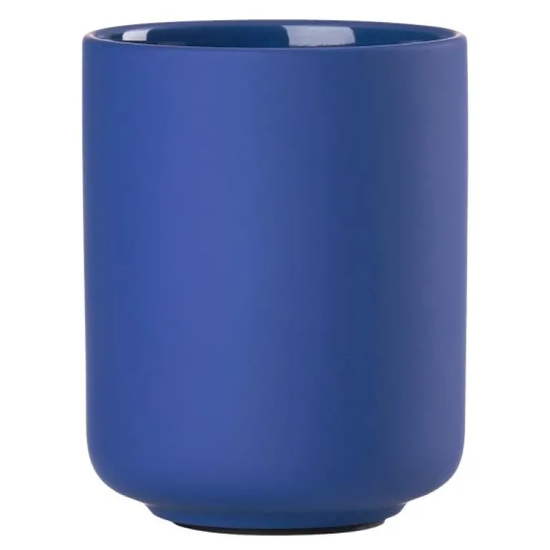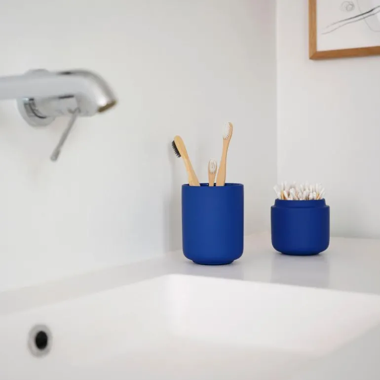 Ume tannbørsteholder 10 cm indigo blue, fra Zone. Tannbørstekruset fra baderomsserien Ume er tilgjengelig i de fineste, milde fargene. Det er et mykt og behagelig bekjentskap, og det er designertrioen VE2 som står bak designen av seriens velproporsjonerte elementer. Høyde 10,3 cm.