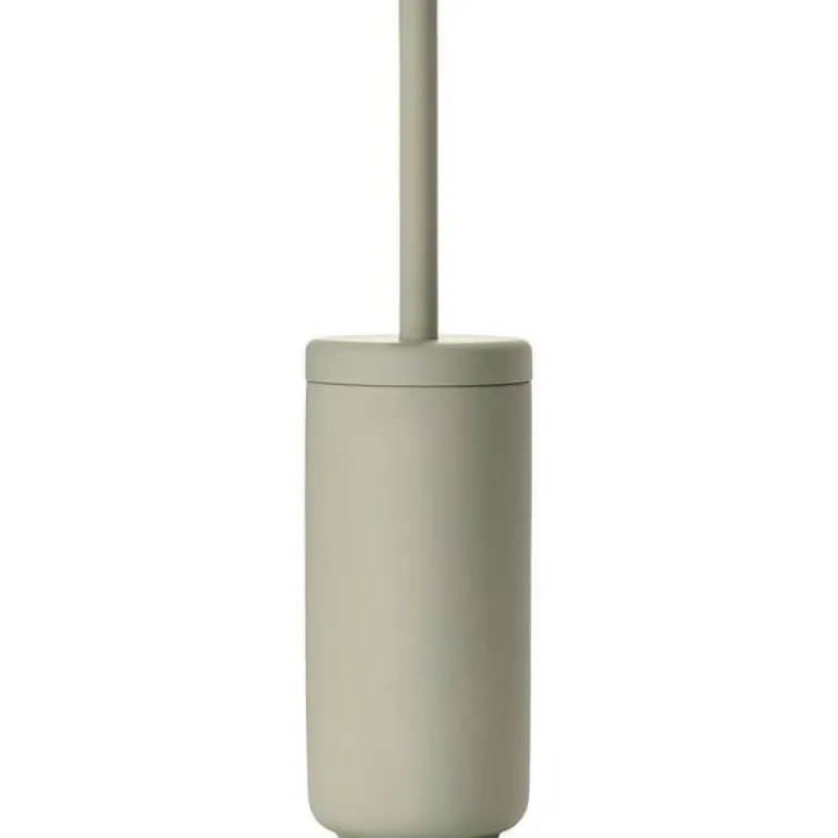 Zone Ume Toalettbørste Dia. 10 x 38,7 cm Eucalyptus Green. Toalettbørsten fra baderomsserien Ume har en praktisk innvendig kopp som gjør det enkelt å tømme ut overflødig vann, og børsten har god arbeidslengde og glir lett på plass i holderen. Designertrioen VE2 har skapt seriens velproporsjonerte elementer. Høyde 38,7 cm. Elementene i baderomsserien Ume gir et solid og velbalansert uttrykk – både for øyne og hender. Ume er det japanske ordet for plommetre, og et symbol på eleganse, tålmodighet og styrke. Den første bokstaven, U, bestemmer seriens form, som er moderne og klassisk på samme tid, med gjennomtenkte og funksjonelle detaljer.Såpedispenseren har for eksempel en lang tut for optimal pumpefunksjon.Den elegante søppeldunken har samme høyde som toalettbørsten, og sammen danner de et fint par på baderomsgulvet. Det separate og romslige innerspannet på 4 liter er utstyrt med en ny, smart finesse, slik at man enkelt kan montere søppelposen uten at den kommer i klem eller blir synlig fra utsiden.