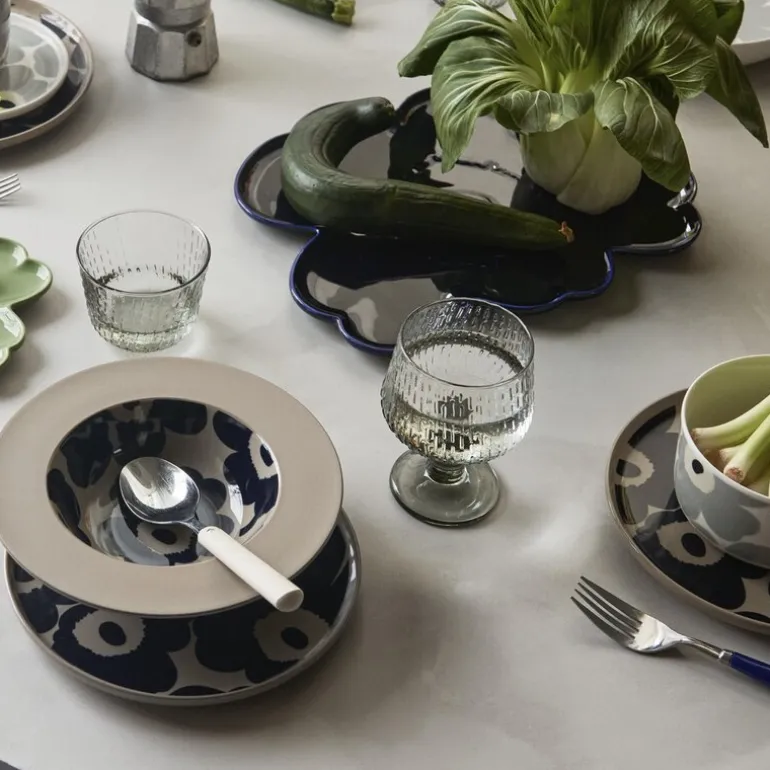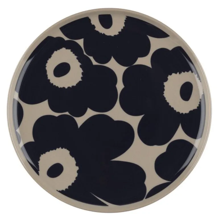 Unikko asjett 20 cm beige/mørk blå, fra Marimekko. Oiva-asjetten med det ikoniske Unikko-mønsteret er laget av holdbart brunt steintøy, som kombinerer både funksjonalitet og tidløs design. Denne asjetten er et pålitelig valg for både daglig bruk og spesielle anledninger, og den tåler oppvaskmaskin, ovn, mikrobølgeovn og fryser uten problemer. Før bruk, husk å fjerne klistremerket på bunnen av asjetten, da det inneholder en liten mengde metall.
