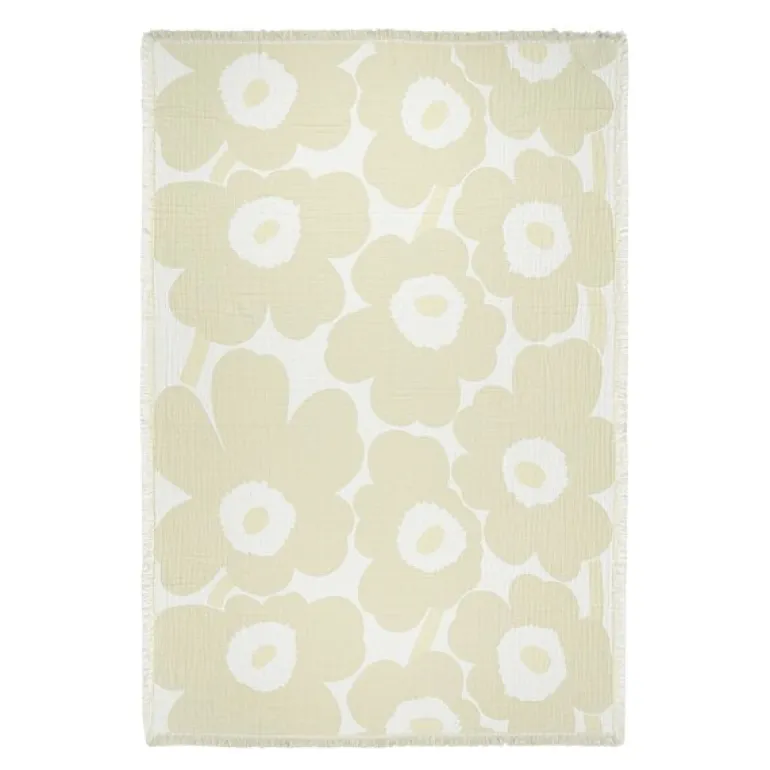 Marimekkos Unikko-pledd er en elegant og praktisk tekstil som tilfører varme og stil til ethvert rom. Med en størrelse på 150×220 cm er det perfekt for både sofaen, sengen eller som et dekorativt element i stuen. Pleddet er laget av bomull med jacquardstrikk, noe som gir det en strukturert og slitesterk overflate. De korte frynsene langs kantene understreker den klassiske estetikken, og mønsteret er omvendt på baksiden, slik at du kan variere uttrykket etter behov.