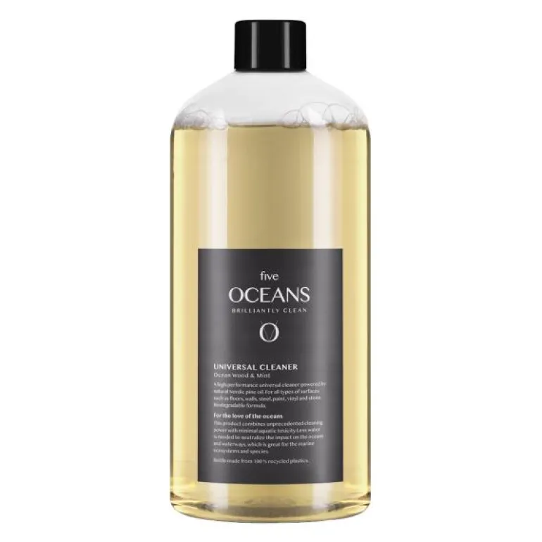 En moderne universal rengjøringssåpe basert på nordisk furuolje, med god effekt på fett, for rengjøring hjemme. Perfekt for rengjøring av gulv, vegger, malte overflater, stål, vinyl og steinmateriale. Biologisk nedbrytbar formel med overflateaktive stoffer fra sukker, blandet med nordisk furuolje. Rengjør hjemmet ditt effektivt, med en formel som er skånsom mot materialene i hjemmet ditt. Universalsåpen har en frisk duft med toner av furu, sprø mynte og marine akkorder.