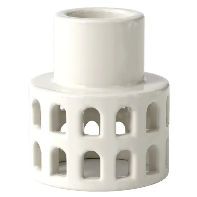 Dekorativt lyshus, Mini tårn 6 cm, fra Urbania-serien til Kähler. Nyt klassisk bygningskunst fortolket i blankglasert keramikk gjennom Kählers håndlagde designtradisjoner. Med denne miniutgaven av et av Urbania-seriens ikoniske lyshus får du en unik variant av kronelys som vil skape en rustikk og koselig atmosfære i ethvert rom. Urbania Lyshus Mini Tårn-lysestaken er 6 cm høy, og med hvert vindu utskåret for hånd får du en både autentisk og avslappet stemning, der kronelysestakene med sine små størrelser gjør dem helt perfekte til å skape en variasjon i samlingen av Urbania-lyshus. Plassert sammen med alle de andre Urbania-lyshusene, som i likhet med Mini Tårn også er designet av Mette Bache og Barbara Bendix Becker, vil de skape en ny og annerledes bevegelse i bylivet. Med i alt fire fortolkninger av de klassiske bygningene fra Urbania-serien som kronelysestaker vil du enkelt og stilfullt kunne lyssette din helt egen ikoniske keramikkby.
