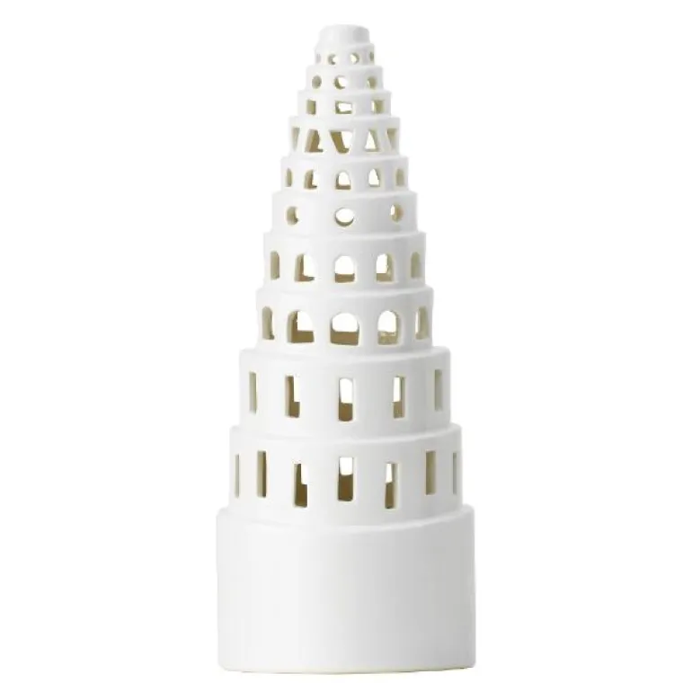 Urbania Lyslyshus Babel i hvit keramikk er et imponerende håndverk og et stilig tillegg til Urbanias serie med lyslykter. Lyslysehuset strekker seg majestetisk oppover og symboliserer både oversikt og synlighet. Den kombinerer klassisk keramikk med nordisk design, og skaper et sterkt visuelt inntrykk. De håndslipte vinduene gir hvert lyslyshus et unikt preg, noe som gjør det til et kunstverk i seg selv. Når du tenner et lys inni, vil den glaserte overflaten med sine varierte vinkler og former reflektere lyset på en vakker måte, og skape en koselig atmosfære i rommet. Dette lyslyshuset er perfekt for å tilføre varme og stil til ethvert hjem.