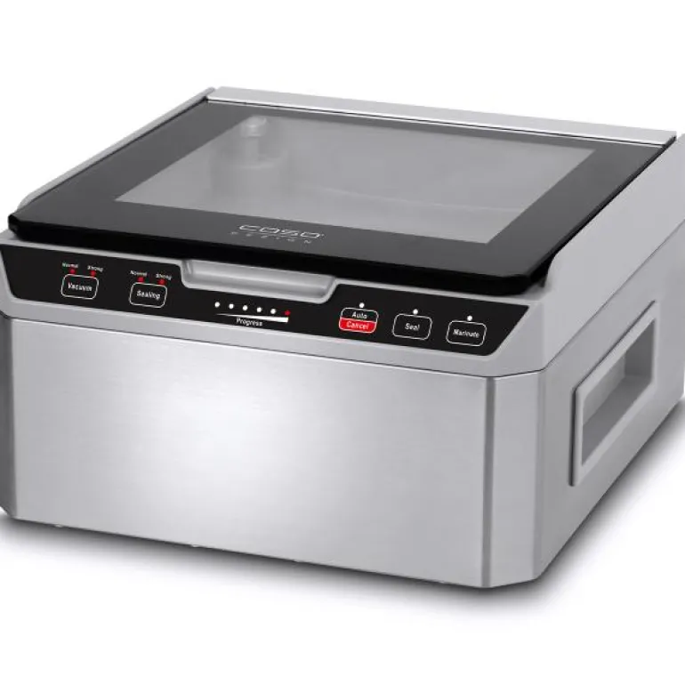 Casos Vacu Chef 40 er en profesjonell og kraftig vakuumeringsmaskin med en kraftig motor. Den har et funksjonelt design og er en stor maskin med et tansparent lokk. Med sin kammerfunksjon kan man vakuumere maten gjennom å legge i pose eller rulle med maten i. Maskinen byr på mange funksjoner og muligheter for bevaring av mat i hverdagen, både hva gjelder vakuumering, svetsning og forseiling. Den kan alt.