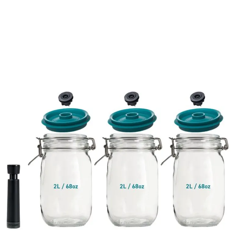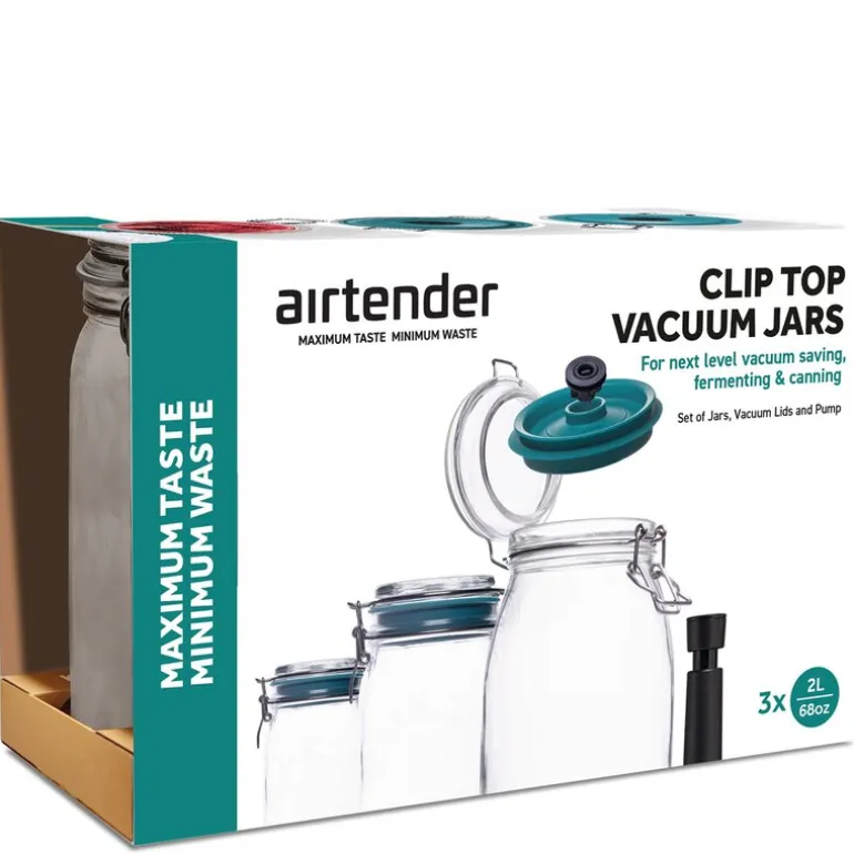 Sylting, også kjent som wecking, blir enkelt med Airtender-vakuumlokkene, og selv etter åpning sørger vakuumlokkene for at maten holder seg fersk lenger. Dette settet er perfekt for deg som ønsker å forlenge holdbarheten på mat, samtidig som du nyter fordelene med raskere fermentering og infusjon.