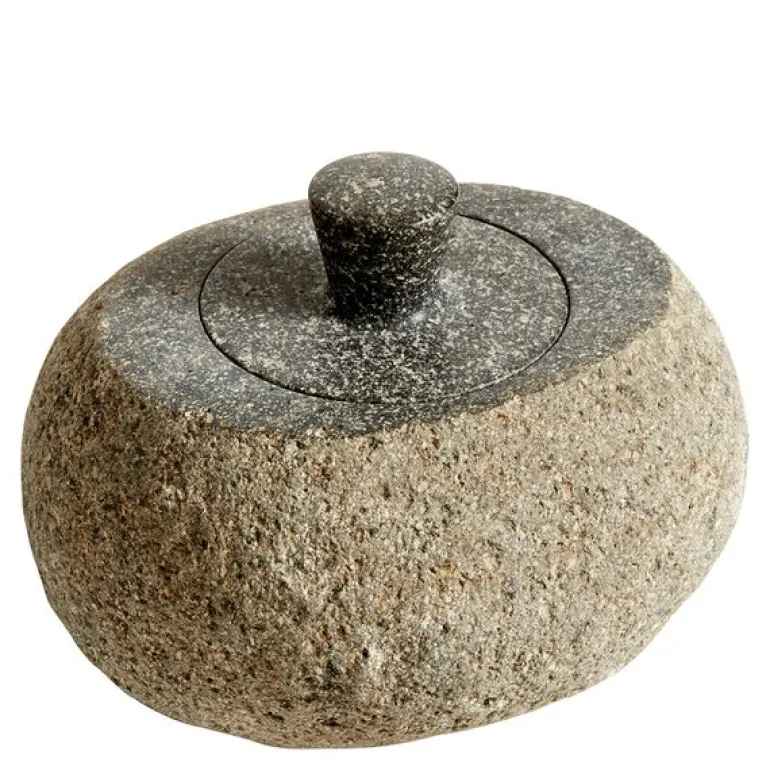 Valley-krukken med lokk fra Muubs, med målene 10×12 cm i grått, er et stilrent og unikt tilbehør til kjøkkeninnredningen din. Laget av elvestein, kombinerer denne krukken en polert innside med en rå ytre overflate, noe som gir den en naturlig og rustikk sjarm. Siden krukken er laget av naturmateriale, varierer hvert eksemplar i form, farge og størrelse, noe som gjør hver krukke unik.