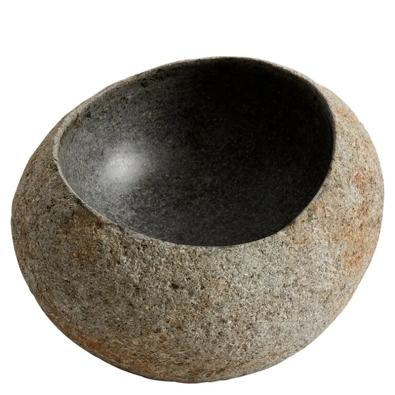 Valley-skålen i medium størrelse fra Muubs er en unik innredningsdetalj, håndlaget av naturlig elvestein, som gir hver skål et helt eget utseende. Med sin rå overflate på utsiden og den polerte innsiden, feirer designen ufullkommenheter og fremhever naturens egen skjønnhet. Skålen kan brukes på mange måter – som fruktskål på spisebordet, til snacks, eller som et dekorativt element i hjemmet ditt.