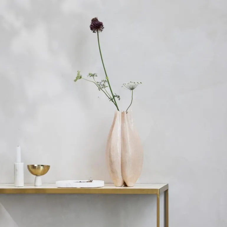 Materialets naturlige farge og tekstur gir en varm og innbydende følelse, noe som gjør vasen til et fantastisk midtpunkt i hjemmet. Designet er tidløst og stilrent, noe som gjør den enkel å integrere i enhver interiørstil. Skap et minimalistisk og elegant utseende med denne Valona-vasen, og la den tilføre ditt hjem en naturlig skjønnhet og sofistikert stil.