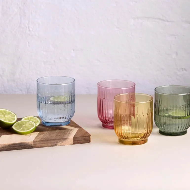 Sett farge på borddekkingen med dette settet med 4 stk farget vannglass fra Aida, hver med en kapasitet på 33 cl. De elegante, fargede glassene har et vakkert rillet mønster som skaper et dynamisk spill av lys og skygger, og gir et moderne og sofistikert uttrykk. Enten det er til hverdagsmiddagen eller en festlig anledning, tilfører disse glassene et ekstra dekorativt element til bordet.
