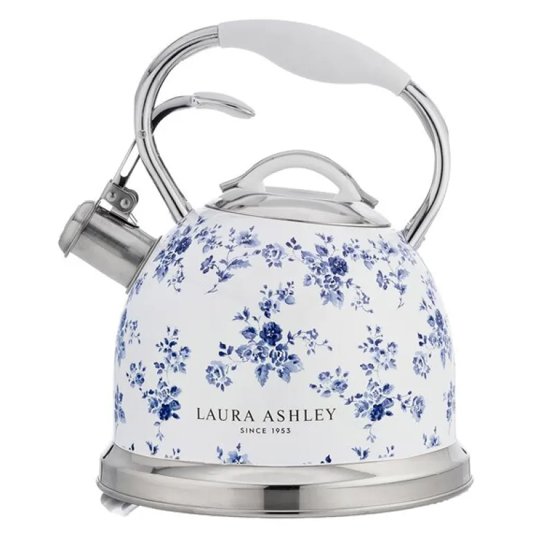 Laura Ashley vannkjele i mønsteret Elveden China Rose blå/hvit kombinerer praktisk funksjon med et dekorativt uttrykk. Med kapasitet på 3 liter, tilsvarende omtrent 10 kopper, passer den perfekt når du skal lage flere kopper te eller kaffe samtidig. Kjelen er laget i rustfritt stål og har en klassisk fløyte som varsler når vannet har kokt, og gir en rolig og tradisjonell følelse til kjøkkenet.