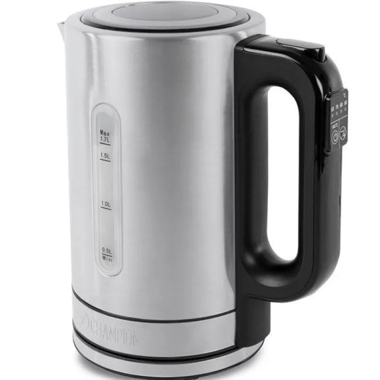 Champions Vannkoker i rustfritt stål gir full kontroll over vannets temperatur, perfekt for te-entusiasten og barnefamilien. På håndtakets kontroll velger du enkelt ønsket temperatur fra de fem temperaturinnstillingene mellom 50–100 °C. Vannkokeren har en kapasitet på 1,7L, beskyttelse mot tørrkoking og automatisk avslåing for mest mulig sikkerhet samtidig som den har et tidløst design.- Effekt: 1850–2200W- Kapasitet: 1,7L- Automatisk avslåing- LED-belysning, endrer farge avhengig av vanntemperatur- 5 temperaturinnstillinger: 50/70/80/90/100 °C- Beskyttelse mot tørrkoking- Avtakbart filter- Tydelig markering for vannivå- Sikkerhetslås- Ledningslengde: 0,7 m- Vekt: 0,93 kg- Mål: LxBxH 20,5×14,1×24,0cm