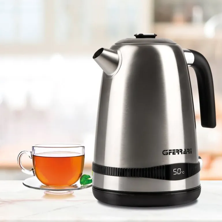G3 Ferraris Tisaniere vannkoker er laget i rustfritt stål og rommer opptil 1,7 liter vann. Den har digital temperaturvisning og lar deg velge blant syv forhåndsinnstilte temperaturer – fra 40 til 100 °C – noe som gjør den ideell for alt fra grønn te til kokende vann.