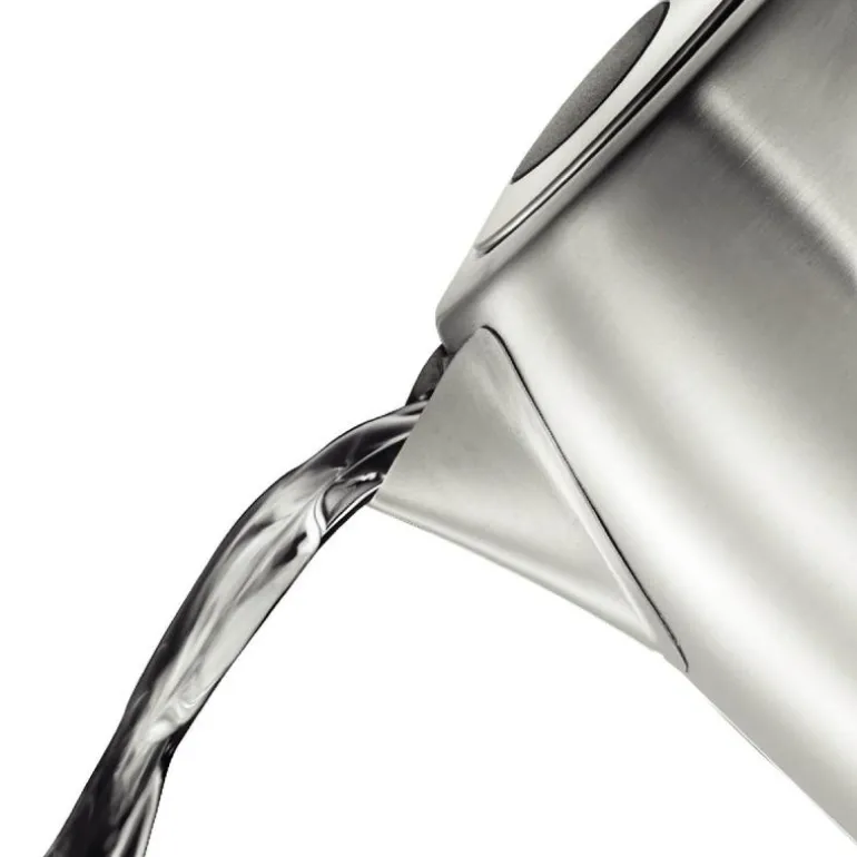 Det elegante designet med en kombinasjon av børstet rustfritt stål og polert aksenter gir denne vannkokeren et luksuriøst utseende.