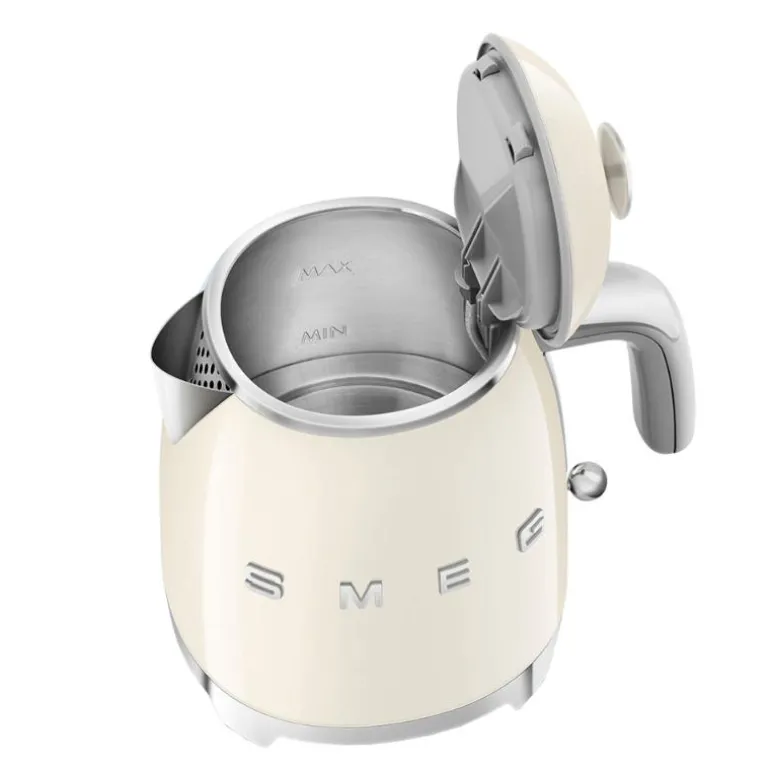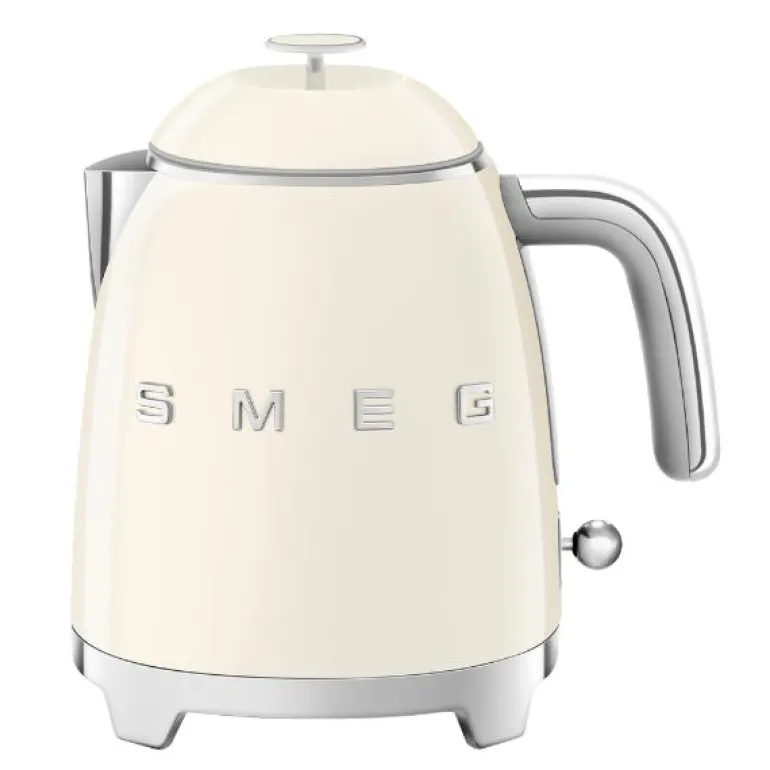 SMEG mini-vannkoker (KLF05) i kremfarget 50-talls retrodesign gir deg god grunn til å la vannkokeren stå fremme på benken. Med sitt sofistikerte og stilfulle utseende, i tillegg til utmerket kvalitet, vil SMEG vannkoker bli et praktisk designelement på kjøkkenet ditt – i lang tid framover.