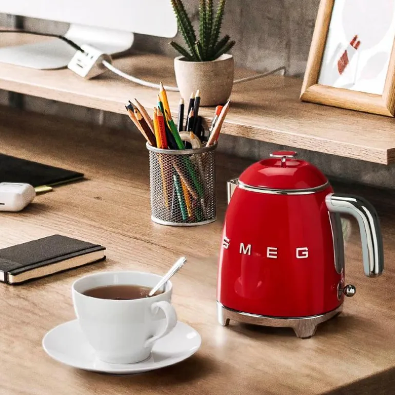 SMEG mini-vannkoker (KLF05) i rødt 50-talls retrodesign gir deg god grunn til å la vannkokeren stå fremme på benken. Med sitt sofistikerte og stilfulle utseende, i tillegg til utmerket kvalitet, vil SMEG vannkoker bli et praktisk designelement på kjøkkenet ditt – i lang tid framover.