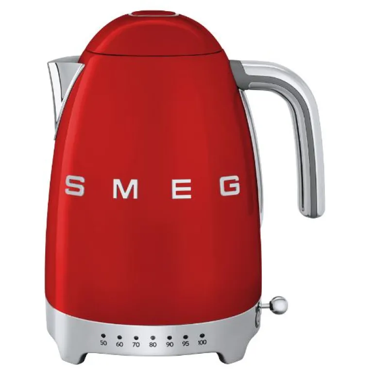 SMEG vannkoker med termostat (KLF04) i rødt 50-talls retrodesign gir deg god grunn til å la vannkokeren stå fremme på benken. Med sitt sofistikerte og stilfulle utseende, i tillegg til utmerket kvalitet, vil SMEG vannkoker bli et praktisk designelement på kjøkkenet ditt – i lang tid framover.