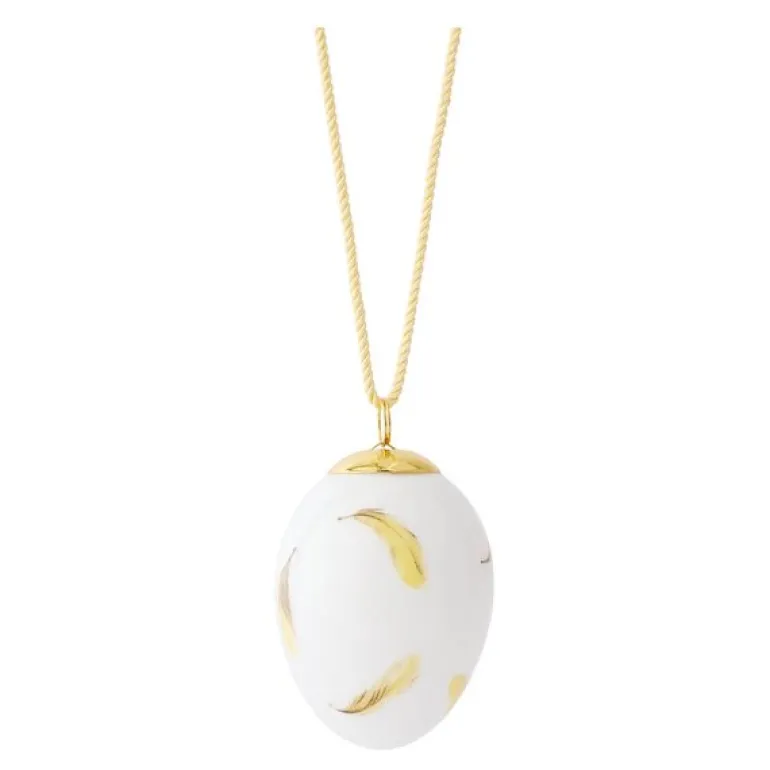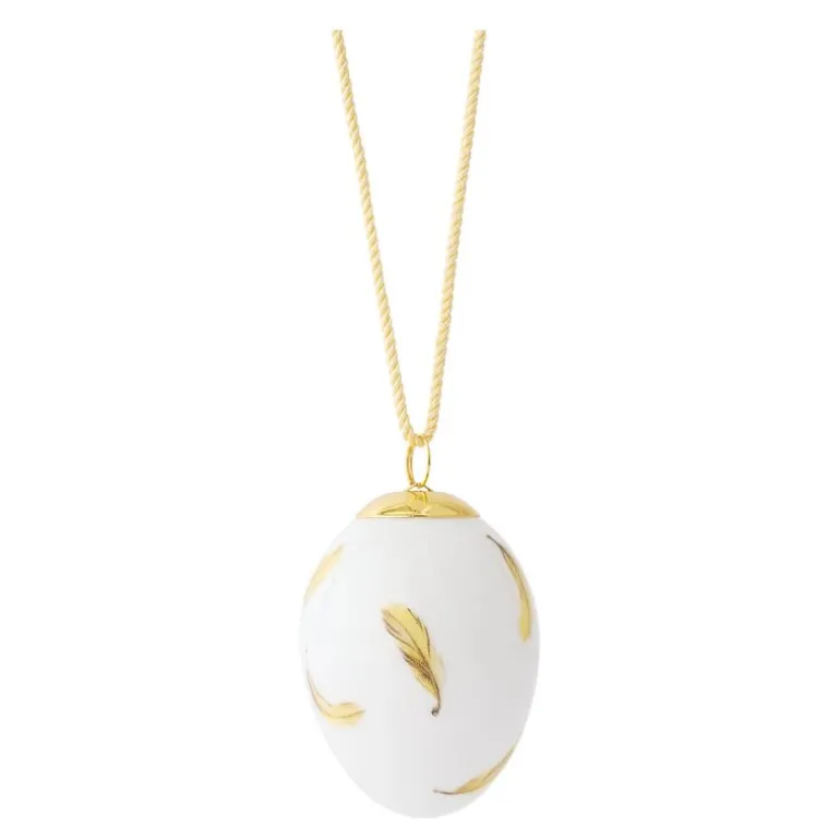 Royal Copenhagen sitt Vårkolleksjon påskeegg 2025, med motiv av små pirolfjær, er skapt for å tilføre en kunstnerisk stemning til hjemmet. Dekorert med delikate, gule fjær fra pirolfuglen, svever motivet lett og grasiøst på porselenet.