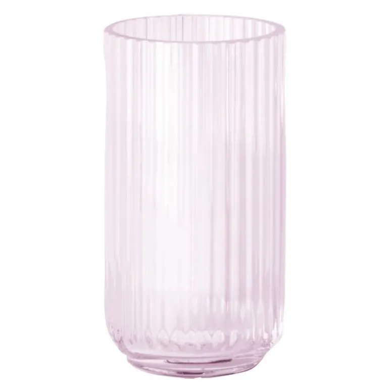 Vase 20 cm rosa glass fra Lyngby. Den originale Lyngbyvasen i grønt glass på 20 cm bidrar med klassisk eleganse til enhver vakker bukett. For få, men skulpturelle større blomster, og for sesongens grener. Alt er rett og slett vakkert i en glassvase fra Lyngby. Lysspillet i glasspilarene skaper et utrolig vakkert liv. Både når den har blomster i, men også når den står som en skulptur for seg selv. Denne størrelsen er tilgjengelig i klart glass, men også i en spesiell røykfylt versjon som kler både blomster, grener og andre vaser.