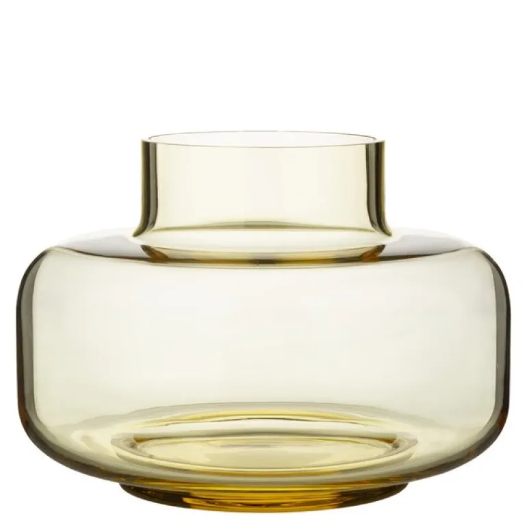 Den gule Urna-vasen fra Marimekko er et uttrykksfullt designelement som balanserer tidløshet og moderne minimalisme. Med en høyde på 21 cm og en generøs form gir den et sterkt visuelt inntrykk, enten den brukes alene eller med blomster. Vasen er designet av Carina Seth Andersson og laget av munnblåst glass, noe som gir hver utgave små unike variasjoner. Den varme gulfargen tilfører interiøret en følelse av lys og energi. For å bevare glassets klarhet anbefales håndvask.