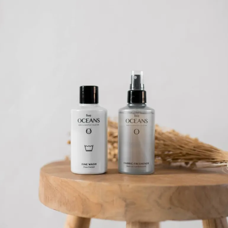 Praktisk reisestørrelse, 10 cl med vaskemiddel til fin vask fra Five Oceans. Vask ull, silke, mohair, Kashmir og viskose med Five Oceans utrolig skånsomme delikate vask med naturlige overflateaktive stoffer fra sukker. Den patenterte fiberforsterker Oatium XR® styrker de delikate tekstilfibrene i favorittplaggene dine og minimerer slitasje. Gir klærne en delikat duft av fersk sitrus, furu, lavendel og sedertre.