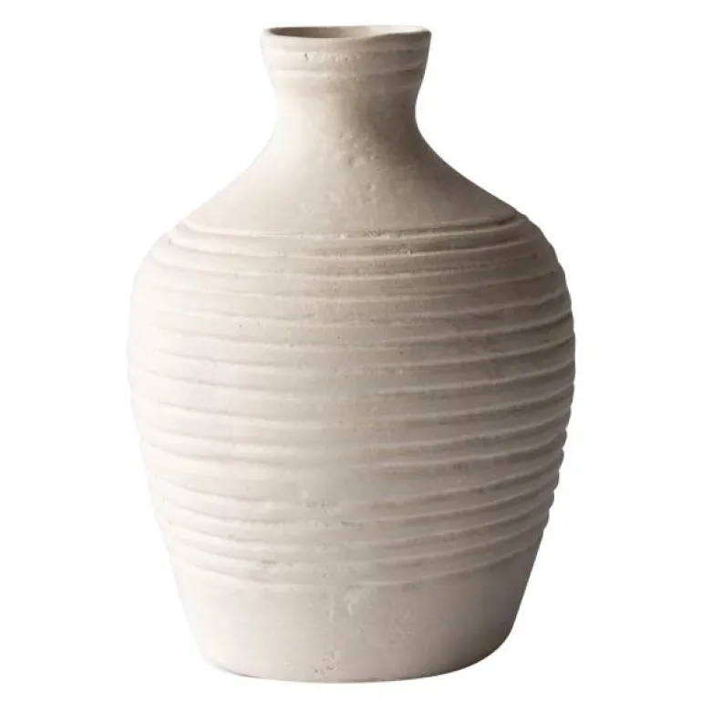 Veneto urne 25,5×18 cm hvit fra Tell Me More. Dekorativ urne laget av pappmache. Urnen har en rustikk design som er vakker å bruke som dekorasjon i stuen eller kjøkkenet. Veneto-urnen er laget av rester og gamle aviser fra lokale forhandlere i en landsby i India. Hver urne er unik i form og farge og produktene kan derfor avvike litt fra bildene.