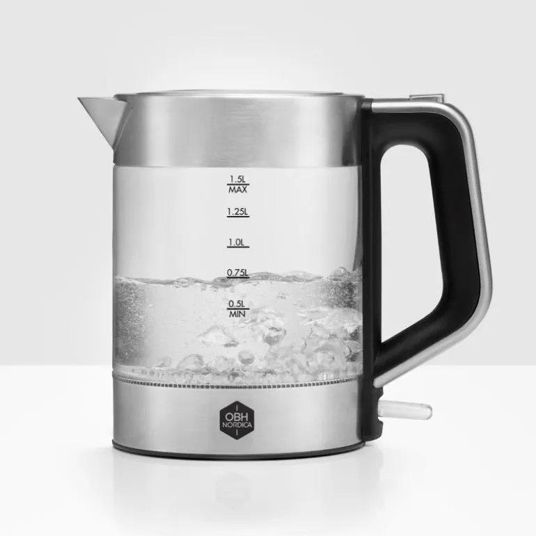 Elegant vannkoker i kvalitetsmaterialer. Venice Glass Kettle har bekvemt håndtak og helletut som gjør vannkokeren veldig brukervennlig. Kombinasjonen glass og rustfritt stål er ikke bare pen, men gjør vannkokeren veldig enkel å rengjøre. Lag en god kopp te eller effektiviser matlagingen ved å koke opp vann rett i Venice Glass Kettle. Automatisk deaktiveringsfunksjon og tørrkokingssikring for sikker bruk. Med kapasitet på 1,5 l dekker den behovene dine uten å ta for mye plass på kjøkkenet. – Elegant vannkoker i glass og rustfritt stål – Behagelig håndtak og smart helletut – Kapasitet på 1,5 l – Ledningsløs og utstyrt med tørrkokingssikring – Automatisk deaktivering