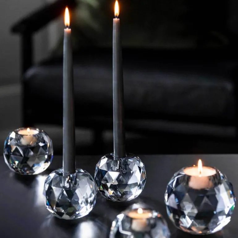VERA er godt håndverk. Serien er håndlaget i ekte krystall med håndslipt fasettmønster i koksgrå lysterfarge. De tre størrelsene er telykt liten (for lite telys) H 8 cm, telykt stor (for stort telys) H 10,5 cm og lysestake (for kronelys) H 8 cm. Formspråket er elegant med stram fasettslipt dekor som gir en følelse av luksus. Produktene er like fine alene som i grupper, de skaper alltid et sofistikert og stilig interiør.