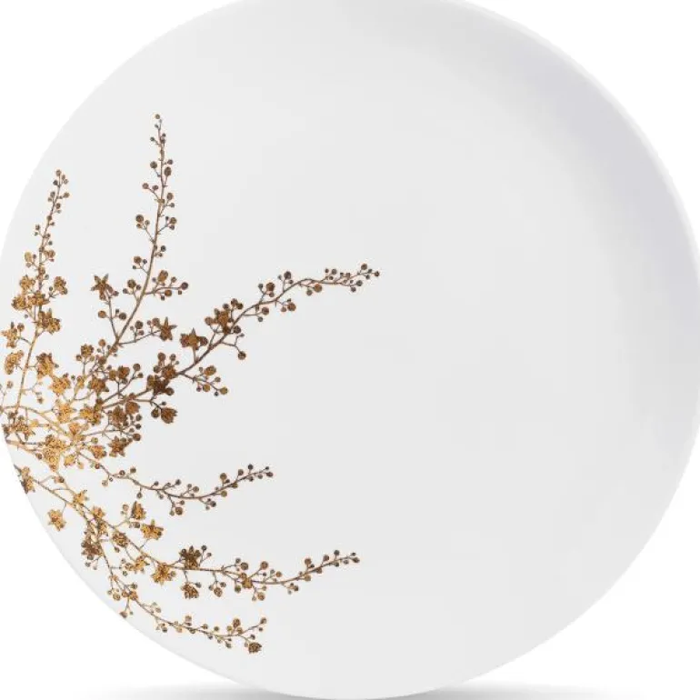 Vera Jardin 27cm/11in. Vera Jardin fra Wedgwood er inspirert av Veras Wangs kjærlighet til kunst og personlige samling av botaniske illustrasjoner. Skimrende, varme blomster i gull og bronse på et rent hvitt bakteppe, er perfekt for middagsselskaper med familie og venner. Alle produktene presenteres i stilige Vera Wang Wedgwood-gaveesker.