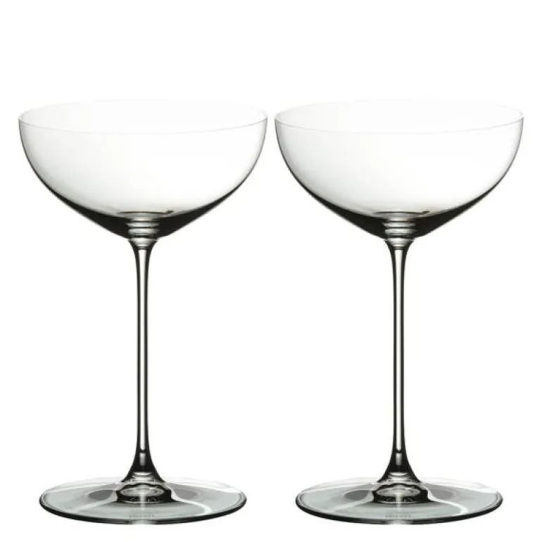 To stykk coupe/cocktailglass fra Riedel Veritas. Et cocktailglass i klassisk stil. Glasset kan også brukes som martiniglass eller champagneglass.