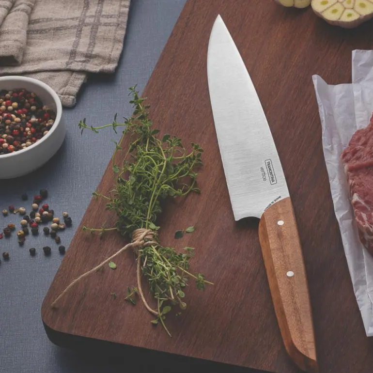Hvis du vil ha en allsidig, funksjonell kniv for å fullføre knivsettet ditt på kjøkkenet, kan du stole på Tramontinas Verttice 8 verktøykniv med blad i rustfritt stål og håndtak av naturlig tre. Materialet og måten den er laget på gjør denne kniven svært motstandsdyktig og slitesterk. En uunnværlig kniv for å gjøre din daglige matlaging enklere!