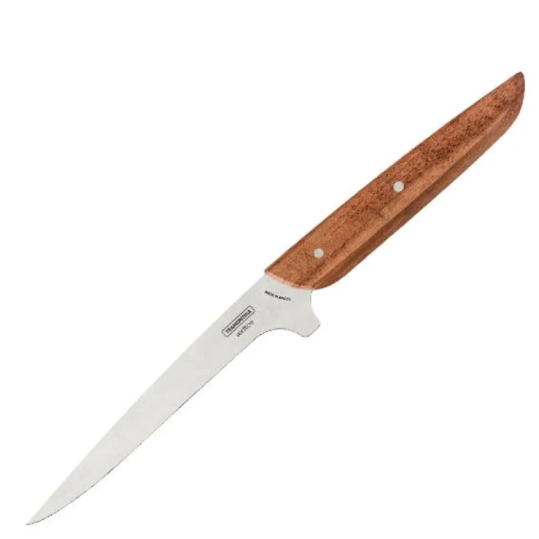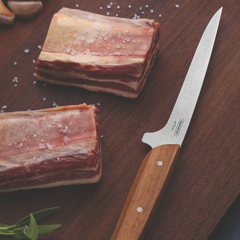 Med Tramontinas Verttice 6 utbeningskn vil du ha den ideelle kniven for å beine ut og dele opp kjøttstykker. Den har et solid knivblad i rustfritt på grunn av varmebehandlingen den gjennomgår. Håndtaket er laget av naturlig tre med svært slitesterke nagler i rustfritt stål og er svært behagelig å bruke. Det ideelle valget for å gjøre kjøkkenoppgavene dine enklere!