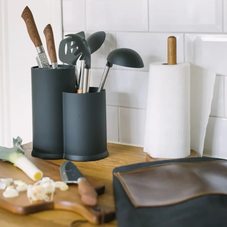 Plasser brede knivblokker med verktøystativer på kjøkkenbenken for å lagre dine skarpe kniver og alt kjøkkenutstyr på en trygg og sikker måte. I tillegg er produktet en fantastisk interiørdetalj. Høyde 22,5 cm