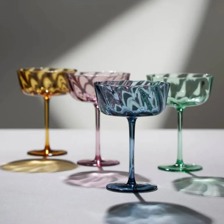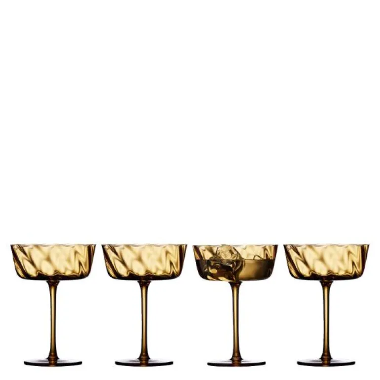Vienna champagneskål 35 cl 4 stk amber, fra Lyngby Glas. De flotte munnblåste champagneskålene har et mykt optisk spiralmønster, og de er velegnet til borddekking i hverdagen og til festlige anledninger når bordet skal fylles med liv og farger. 35 cl. Glasserien Vienna er laget av gjennomfarget glass. Velegnet i hverdagen, og kan vaskes i oppvaskmaskin. Vakre Vienna finnes i flere flotte farger. Det kan være bobler i glasset.
