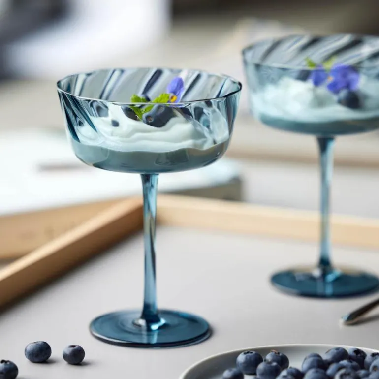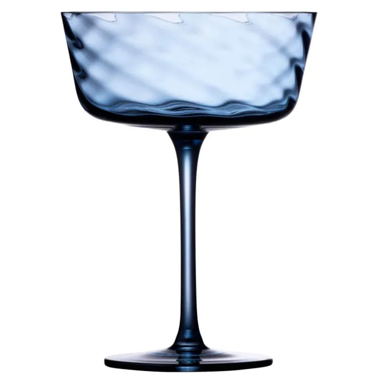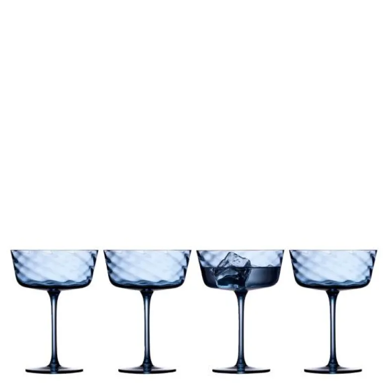 Vienna champagneskål 35 cl 4 stk blå, fra Lyngby Glas. De fantastiske, håndblåste champagneskålene har et delikat optisk spiralmønster, som gir dem en unik og elegant fremtoning. Med sin kapasitet på 35 cl er de ideelle for enhver anledning, enten det er en enkel hverdagsmiddag eller en festlig sammenkomst der bordet skal fylles med liv og farger. Laget av gjennomfarget glass, er Vienna-glasserien både holdbar og vakker. Disse skålene er praktiske nok til daglig bruk og kan enkelt vaskes i oppvaskmaskin. Tilgjengelig i et utvalg flotte farger, kan du velge den som passer best til din personlige stil. Vennligst merk at små bobler i glasset kan forekomme, noe som bare legger til sjarmen til det håndlagde produktet.