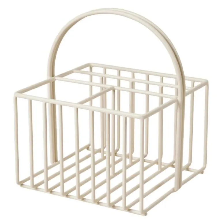 Vietta serviettholder i fargen Rainy Day Grey/lys sandfarge er utført i pulverlakkert jern, kan også brukes til olie- og edikkeflasker eller salt og pepper kverner, ut over at den også passer perfekt til papirservietter. Det er også mulig å tilkjøpe Vietta bestikkholderen i samme materiale og farge, som passer ned i serviettholderens serviettrom.