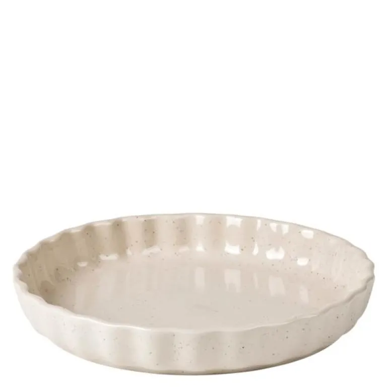 Beige paiform 29 cm i serien Vig, fra Broste Copenhagen. Den populære ovenfaste serie fra Broste Copenhagen, som i forveien finnes i svart, har nå også kommet i en delikat beige farge. Det særlige ved serien er at den kan tåle å komme direkte fra fryser til ovnen og omvendt. Serien er laget i glassert steintøy og har en overflate som gjør at maten slipper lett.