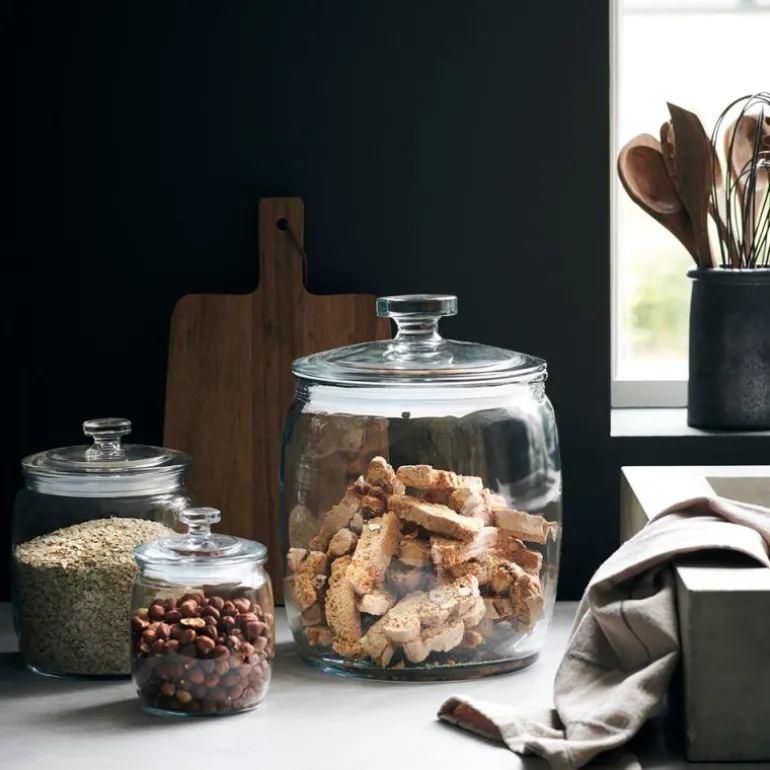 Bruk oppbevaringsglasset, Ville 14,6 cm, med lokk for å holde snacks, nøtter og andre matvarer friske i lengere tid. Med sitt enkle og rene designsnitt holdes kjøkkeninnredningen lys, men likevel elegant når du stiller en rad glasskrukker på en hylle eller kjøkkenbenken. I tillegg til å gi enkel tilgang til matvarene du bruker hver dag, viser innholdet i krukkene fra House Doctor også innredningen din.