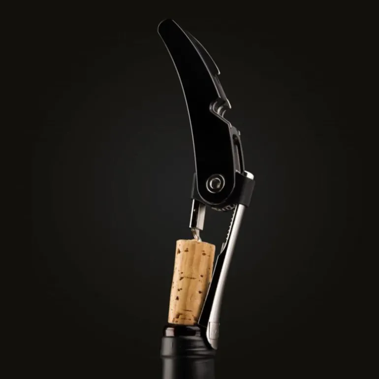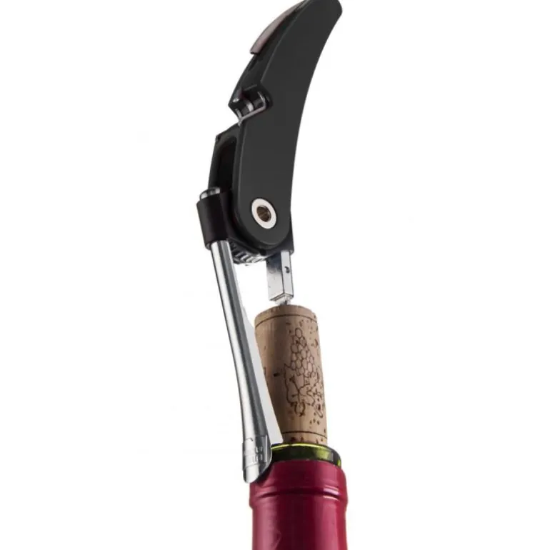 Vinåpner Single Pull svart fra Vacu Vin. Single Pull Corkscrew trekker ut alle korker fra flasken i en jevn og perfekt vertikal bevegelse. Grepet inkluderer en foliekniv og hetteåpner. Den unike spakmekanismen gjør Single Pull Corkscrew til den ultimate korketrekkeren for vinentusiaster så vel som profesjonelle.