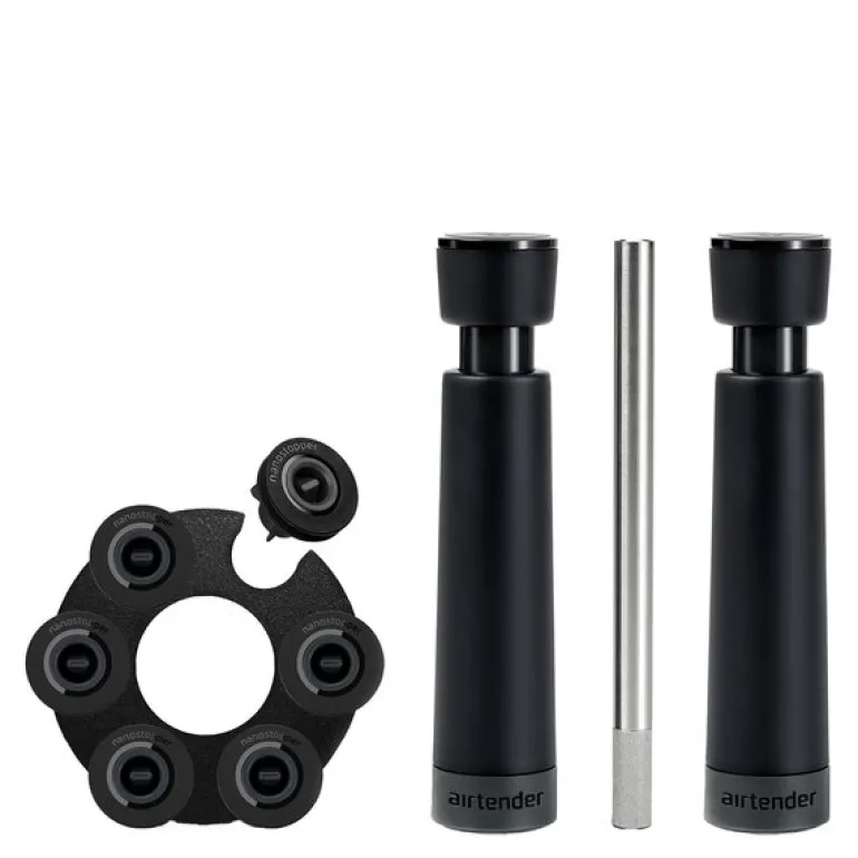 Gaveesken inneholder både en vakuumpumpe, som skaper et lufttett vakuum for å forsegle vinflaskene, samt en vinlufter som forbedrer vinens smaksprofil umiddelbart. I tillegg følger det med forseglinger for enkel og effektiv oppbevaring av vinflasker.