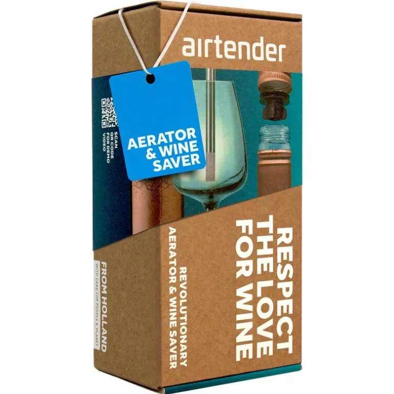 Airtender Vinelsker gaveeske i svart er et must-have for enhver vinentusiast som ønsker å heve sin vinopplevelse. Dette settet, som kommer i en vakker og miljøvennlig pappemballasje, lar deg lufte vinen for å fremheve dens fulle smak og aroma, samtidig som du forlenger holdbarheten på åpne vinflasker opptil fem ganger lenger. Perfekt for å nyte vinen over flere dager uten at smaken forringes.