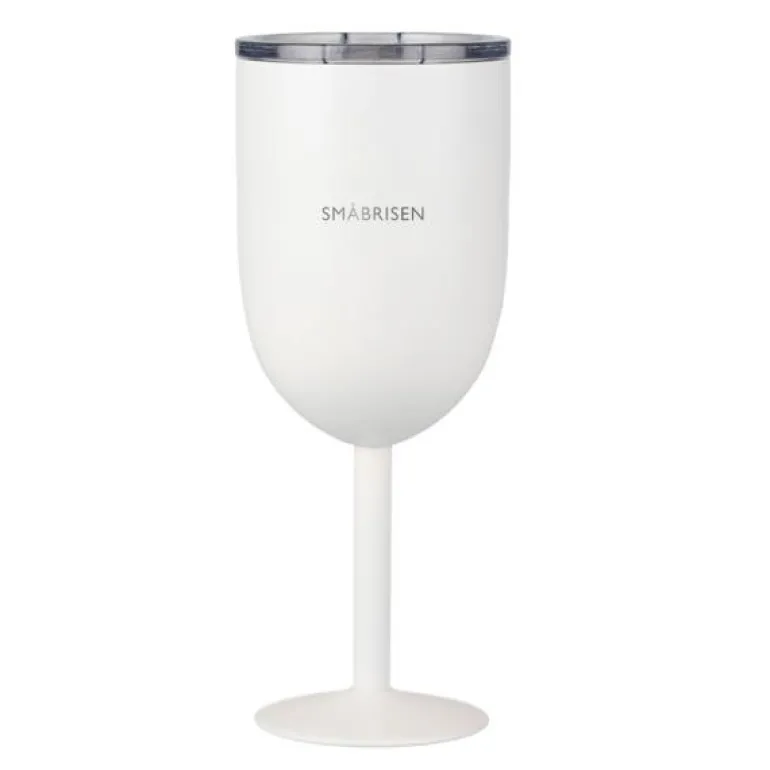 Vinglass termo SMÅBRISEN 35 cl i hvit fra PictureIt er et godt valg for deg som ønsker å nyte kalde drikker med stil og komfort. Termoglasset, med doble vegger i rustfritt stål, holder drikken kald i lengre tid. Det praktiske lokket hindrer insekter fra å komme i drikken, noe som gjør glasset ideelt for utendørs bruk. Fargen sammen med sort tekst gir et moderne og elegant utseende.