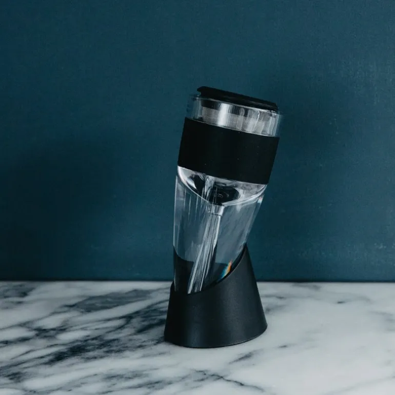 Vinlufter med dryppstativ 15 cm. Taylors vinlufter med tilhørende dryppstativ. Løfter vinen direkte fra flasken over i glasset, noe som frigjør både aromaer og smaker.