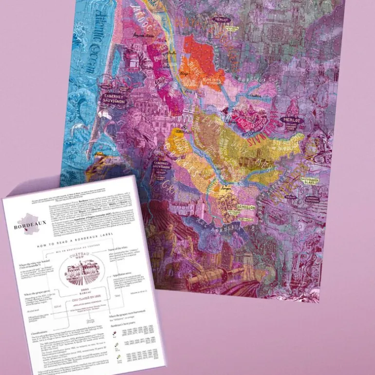 Vinpuslespill Bordeaux 1000 brikker fra Water and Wines. Oppdag Bordeaux, Frankrikes største vinregion, kjent for sine prestisjefylte «châteaux», legendariske viner og historiske steder. Dette delikate håndillustrerte puslespillet feirer regionens rike vintradisjoner og unike terroirer. Bit for bit tar puslespillet deg gjennom Bordeaux’ mosaikk av underregioner og appellasjoner, alle hoveddruetyper og regionale jordtyper.