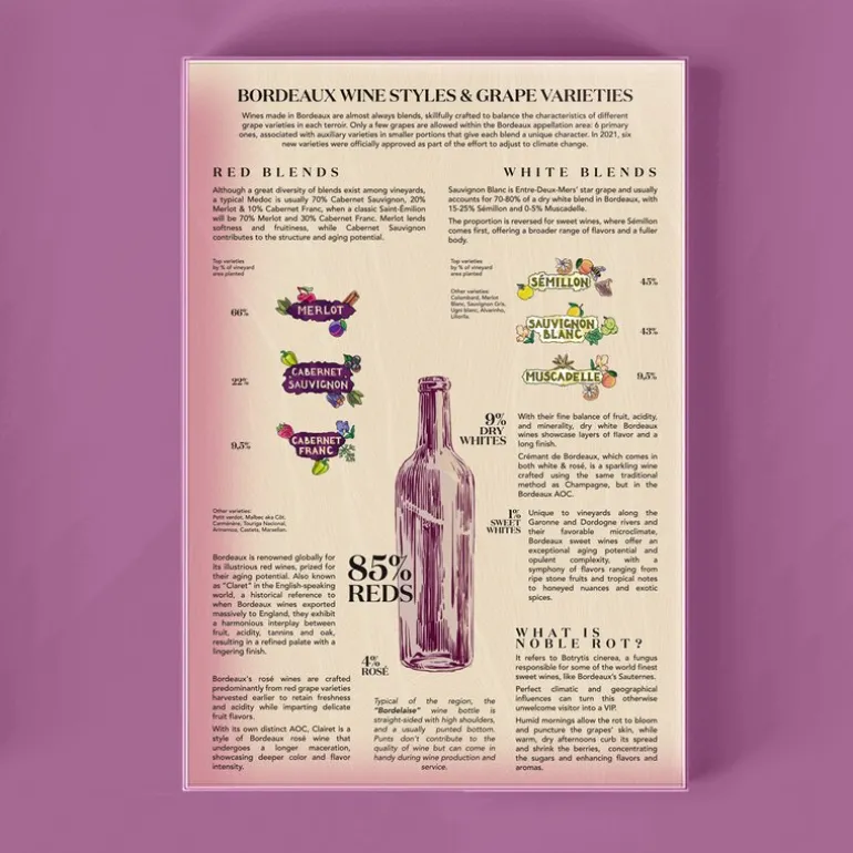 Når du åpner puslespillet, vil du også finne ekstra informasjon som en guide til Bordeaux-vinetiketter, en guide til regionens vinstiler og druesorter, samt profiler av de mest legendariske slottene i Bordeaux, som Château Margaux eller Château Mouton-Rothschild.