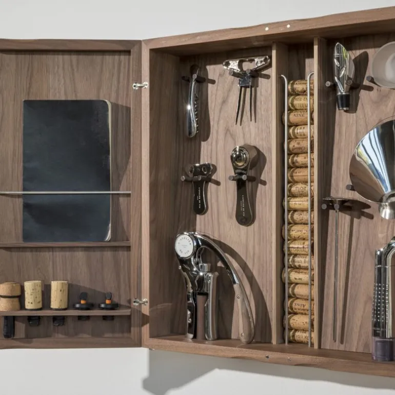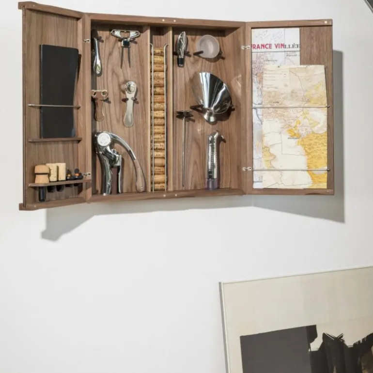Vinsett/vinskap med vintilbehør Cabinet d’Oeno Curiosités fra Látelier Du Vin. Kabinett, eller om du foretrekker å kalle det skap. Uansett er dette skapet fra franske L`atelier du Vin perfekt for vinelskeren.. Det er et skap fylt med høykvalitets vinverktøy og vintilbehør. Skapet er håndlaget i Frankrike og laget av solid valnøtt- og valnøttfiner Perfekt jubileumsgave til vinelskeren.