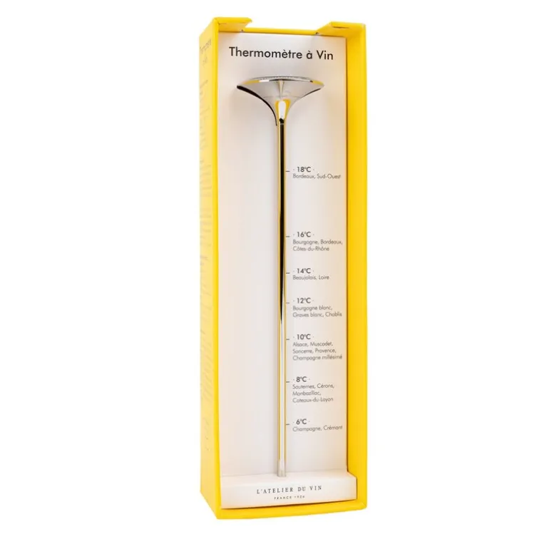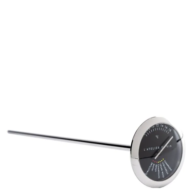 L’Atelier du Vins vintermometer i rustfritt stål er en elegant løsning for å sikre riktig serveringstemperatur på vinen din. Dette franske termometeret er enkelt i bruk: sett det i vinflasken, og les av temperaturen direkte i grader Celsius. Slik får du raskt oversikt over om vinen er klar til servering eller trenger ytterligere nedkjøling eller oppvarming. Det moderne designet gjør det til et stilig tillegg i ethvert kjøkken eller vinskap og en perfekt gave til vinelskere som setter pris på detaljer.
